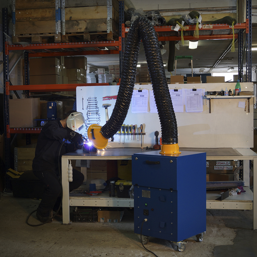 Boxair M2 is a mobile filter unit designed for designed for extraction and filtration of of fumes and dust created mainly during welding processes. Boxair M2 allows at-source air pollution capture thanks to use of fume extraction arm Econ or Oskar 160 series. Filter set consist of a metal mesh pre-filter and F9 class disposable main compact filter